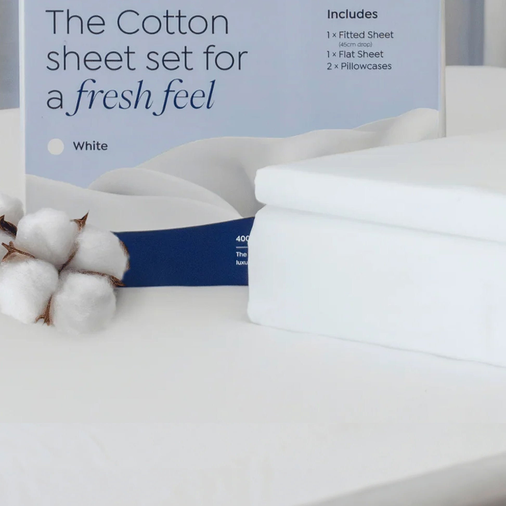 • Sheet set includes: 1 x Fitted Sheet (45cm), 1 x Flat Sheet, 2 x Pillowcases